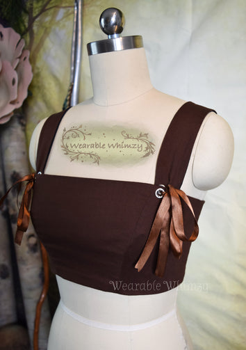 This is a simple little short overbust bodice! She is a lovely dark chocolate wonder. Never been worn!