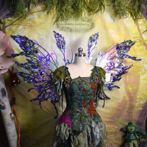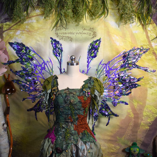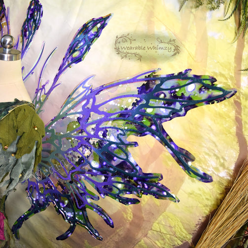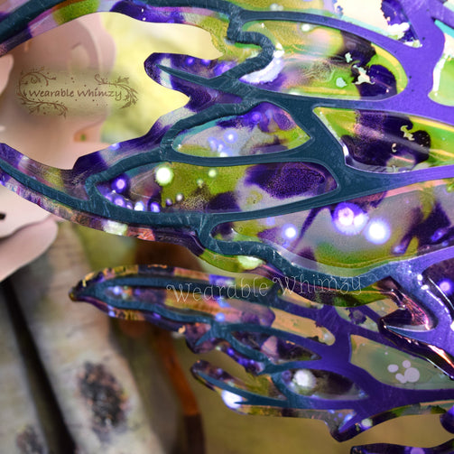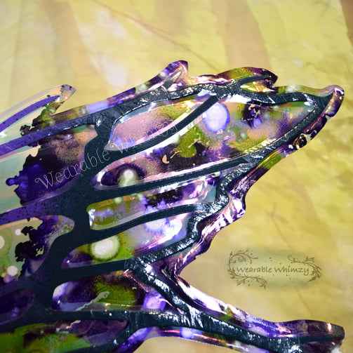 These beauties feature 6 panels and 2 antennas! The pictured set was made in ombre moss/grape/deep loden dura-veining, and skinned in my Fairy Floss iridescent film! Mottled inking in lilac/wisteria/moss/white has been applied throughout and heavier along the edges for an extra sprinkle of springtime serenity! Be the prettiest petal in these wings perfect for any garden fae! You will receive these exact wings!