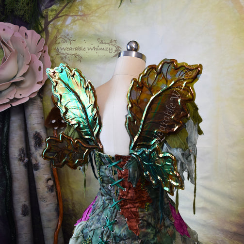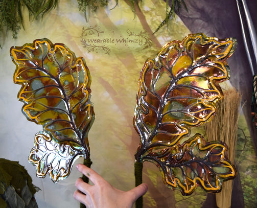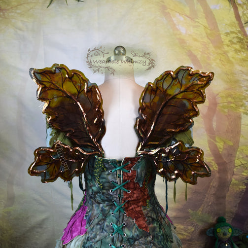 Introducing a teeny version of my Eldergrove wing design! These fluttery friends feature 4 panels! The pictured set was made in ombre cocoa/marigold veining, and skinned in my Burnt Embers iridescent film! Mottled inking in mossy stone/marigold/cocoa has been applied throughout for an extra flare of Fall fantasy. Be the warmest cider in this set of wings perfect for any Autumn fae. You will receive these exact wings!