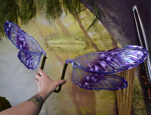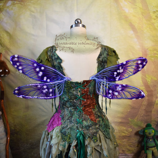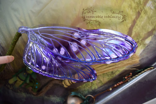 Introducing a teeny version of my Dragonfly wing design! These dainty wings feature 4 panels! The pictured set was made in ombre purple/ink blue veining, and skinned in my Moon Gleam iridescent film! Mottled inking in purples and blues as well as white flecks has been applied for an extra dash of delight. Be the sweetest smelling flower in this set of wings perfect for any buggy fae. You will receive these exact wings!